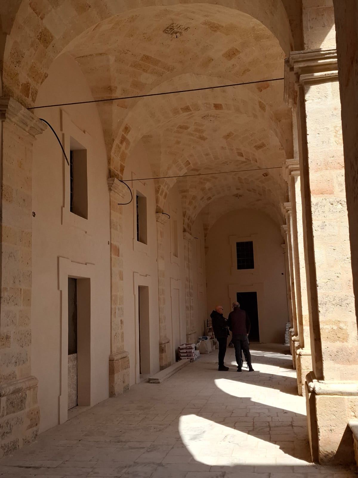 Proprio in queste settimane, i sopralluoghi tecnici confermano che i lavori proseguono, sia negli spazi interni che all’esterno, ad esempio nel chiostro centrale i restauratori stanno ripulendo i capitelli e riportando alla luce la pietra viva dell’architettura storica.